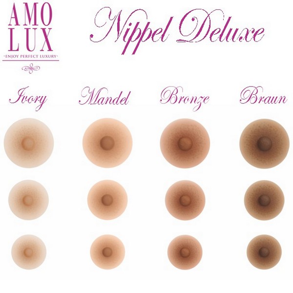 Passend zu unseren Amolux Silikonbrustmodellen gibt es unsere perfekt nachgebildeten Amolux Nippel Deluxe in jeweils vier verschiedenen Farben und drei Größen.