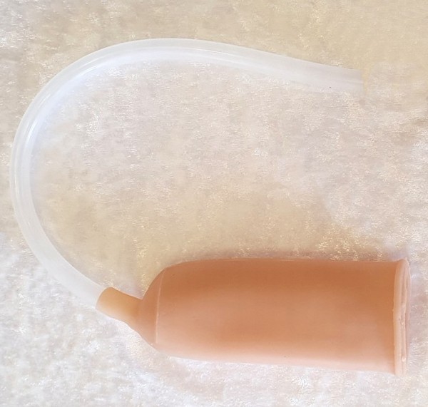 Das Silikon-Kondom kann einfach mit milder Seife gereinigt und wiederverwendet werden. Somit entfällt der Austausch von Einweg-Kondomen.